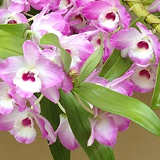 Les fleurs du dendrobium peuvent être de plusieurs couleurs : blanc pur, bordées de rose ou de violet avec parfois de petites touches de vert.