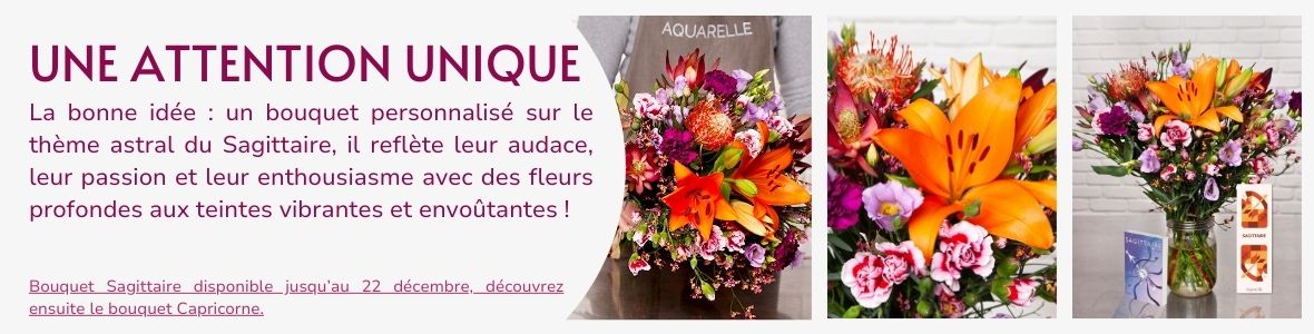 Ce mois-ci, découvrez notre bouquet inspiré des Sagittaires, accompagné de son livre astrologique.