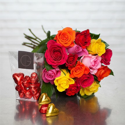 For Valentine’s Day, let your heart speak with this gift that is both elegant and indulgent. The Coup de Cœur DUO combines beautiful roses in vibrant colours with delicious praline-filled chocolate hearts, creating a sweet and meaningful declaration of love.