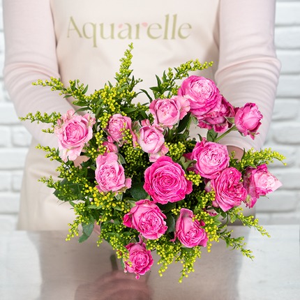 Offer a fresh and thoughtful gesture with this bouquet of pink spray roses and solidago, a delicate floral creation designed to brighten everyday moments.