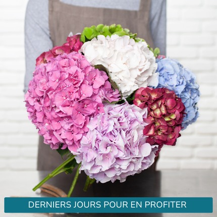 - Des hortensias colorés (les couleurs peuvent varier selon l’arrivage)