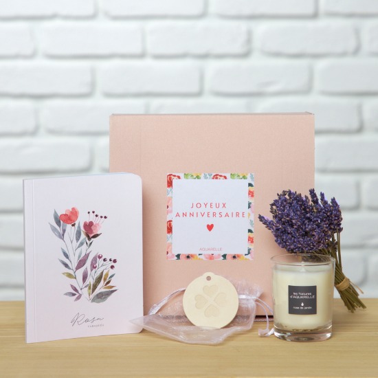 Aquarelle & Rosa Cadaqués s'allient pour vous créer un coffret rempli d’attentions délicates à offrir pour un anniversaire.