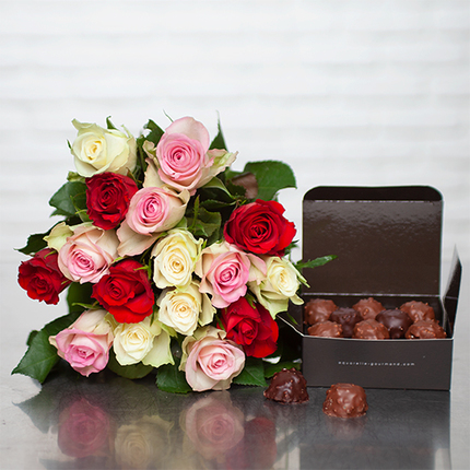 Ce duo associe l’élégance intemporelle des roses, dans une palette délicate, à la douceur d’un chocolat praliné généreux. Un cadeau complet, à la fois raffiné et réconfortant, idéal pour faire plaisir en toute simplicité… et avec beaucoup d’émotion.