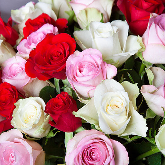 – Des roses rouges, blanches et roses, cultivées de façon responsable