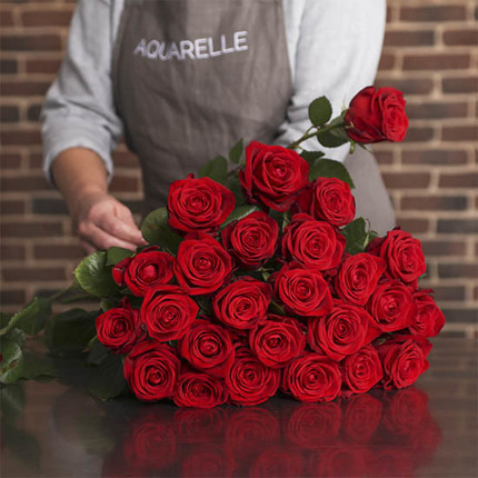 Lors de leur transport, ces roses fraîches voyageront dans un vase spécialement conçu par Aquarelle, permettant au bouquet de ne pas manquer d’eau.