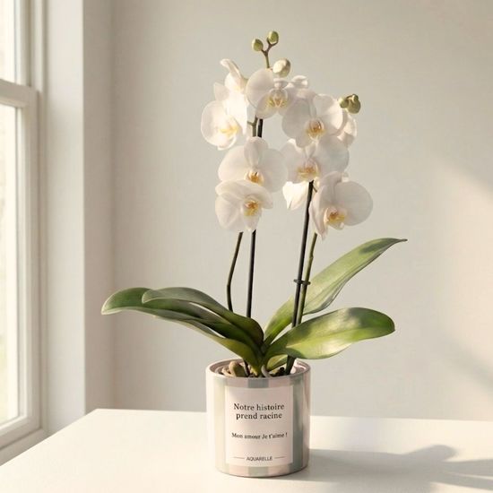 Avec ou sans personnalisation, cette orchidée est livrée avec son cache-pot et saura faire plaisir à son destinataire.